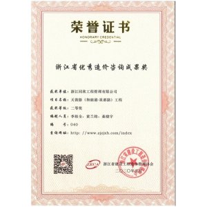 浙江省優(yōu)秀造價(jià)咨詢成果獎(jiǎng)